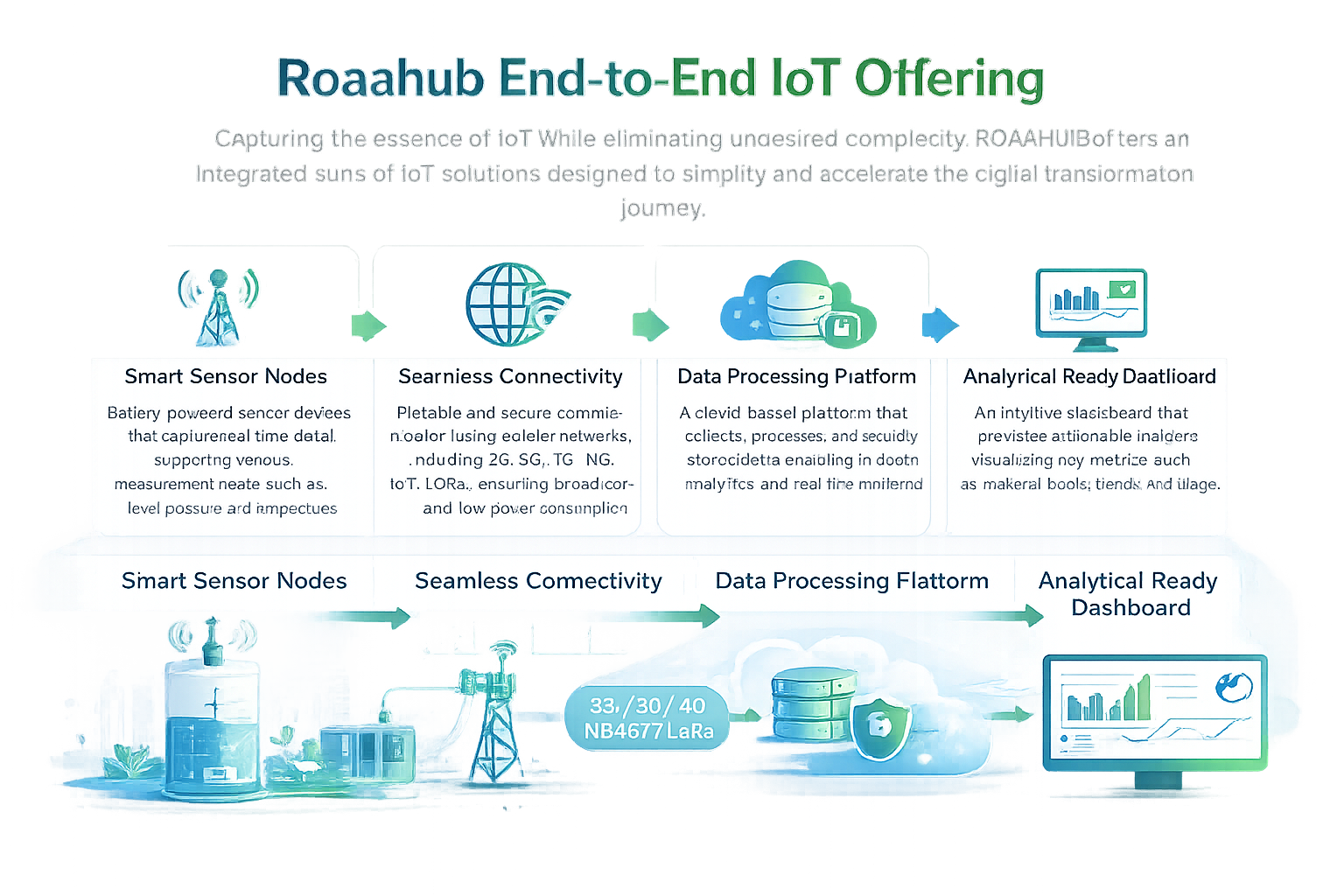 Roaahub connects sensors, communication networks, cloud platforms and analytics dashboards into one intelligent ecosystem.